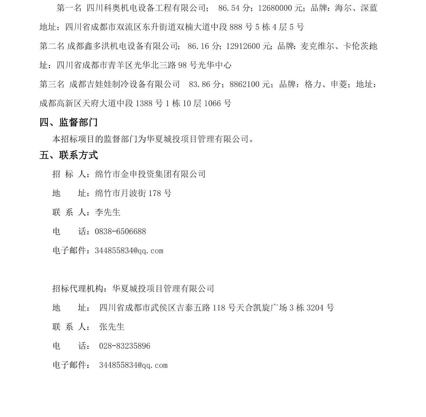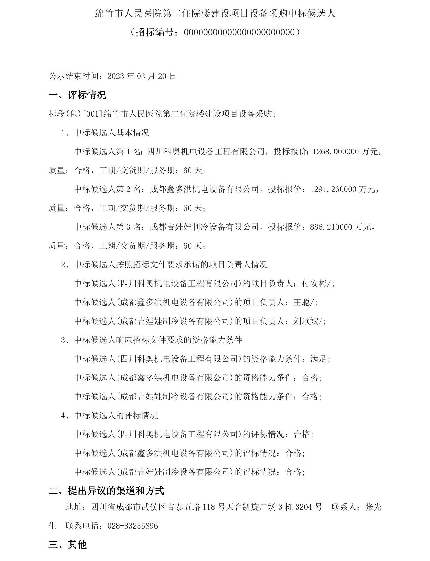 綿竹市人民醫(yī)院第二住院樓建設(shè)項(xiàng)目設(shè)備采購中標(biāo)候選人