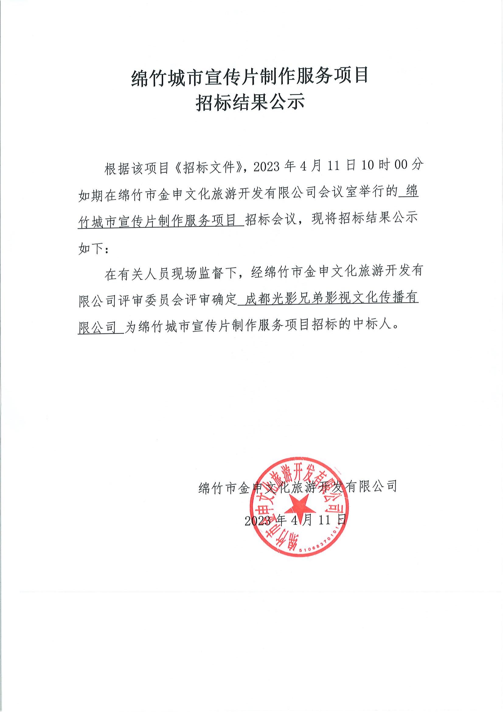綿竹城市宣傳片制作服務(wù)項目招標結(jié)果公示
