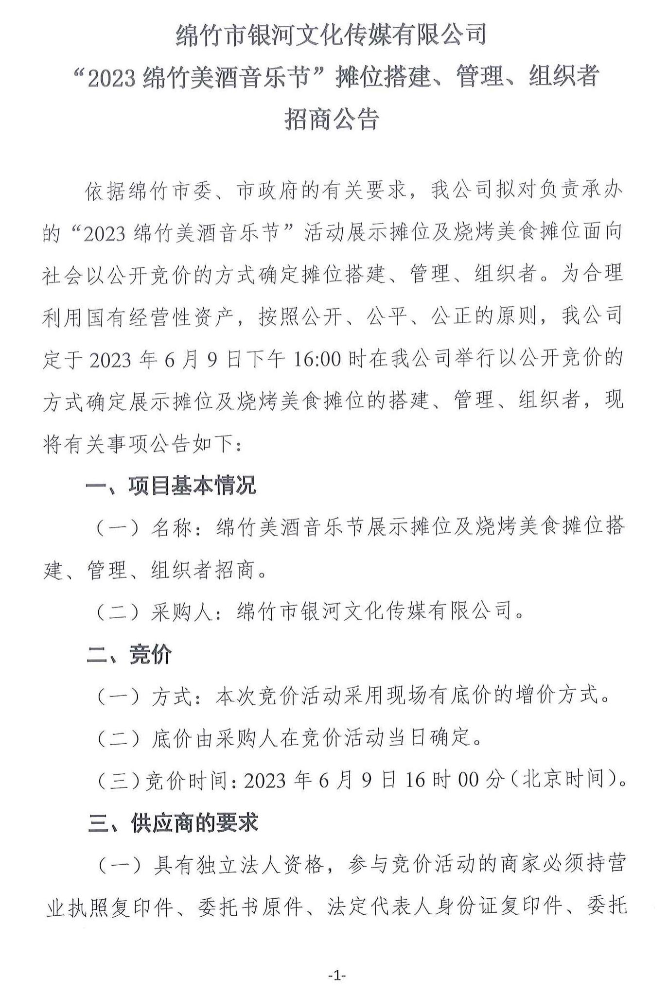 “2023綿竹美酒音樂節(jié)”攤位搭建、管理、組織者招商公告