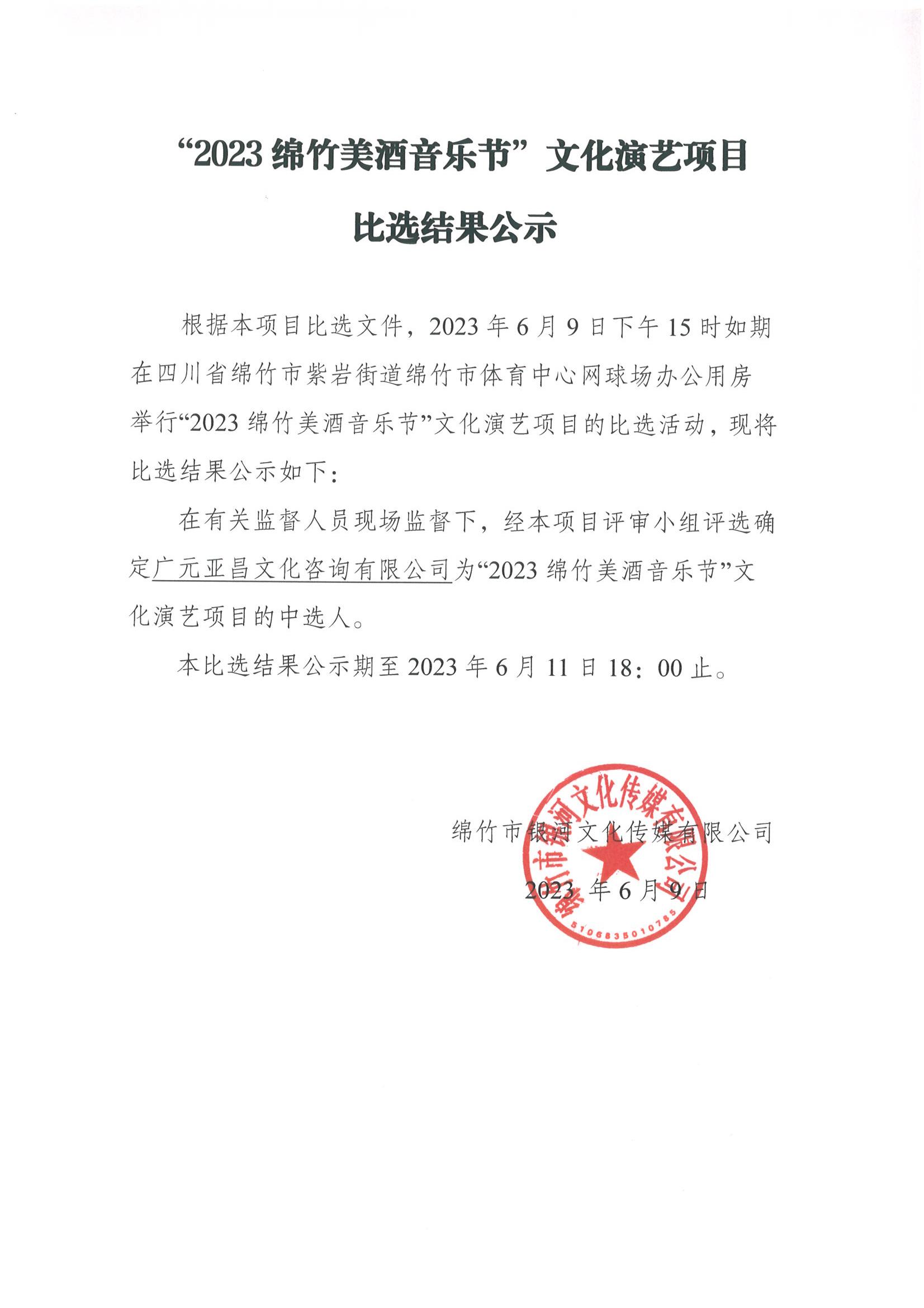 “2023綿竹美酒音樂(lè)節(jié)”文化演藝項(xiàng)目比選結(jié)果公示
