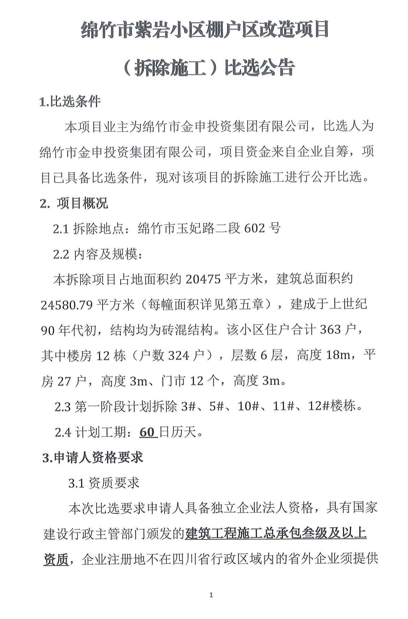 綿竹市紫巖小區(qū)棚戶區(qū)改造項(xiàng)目(拆除施工)比選公告